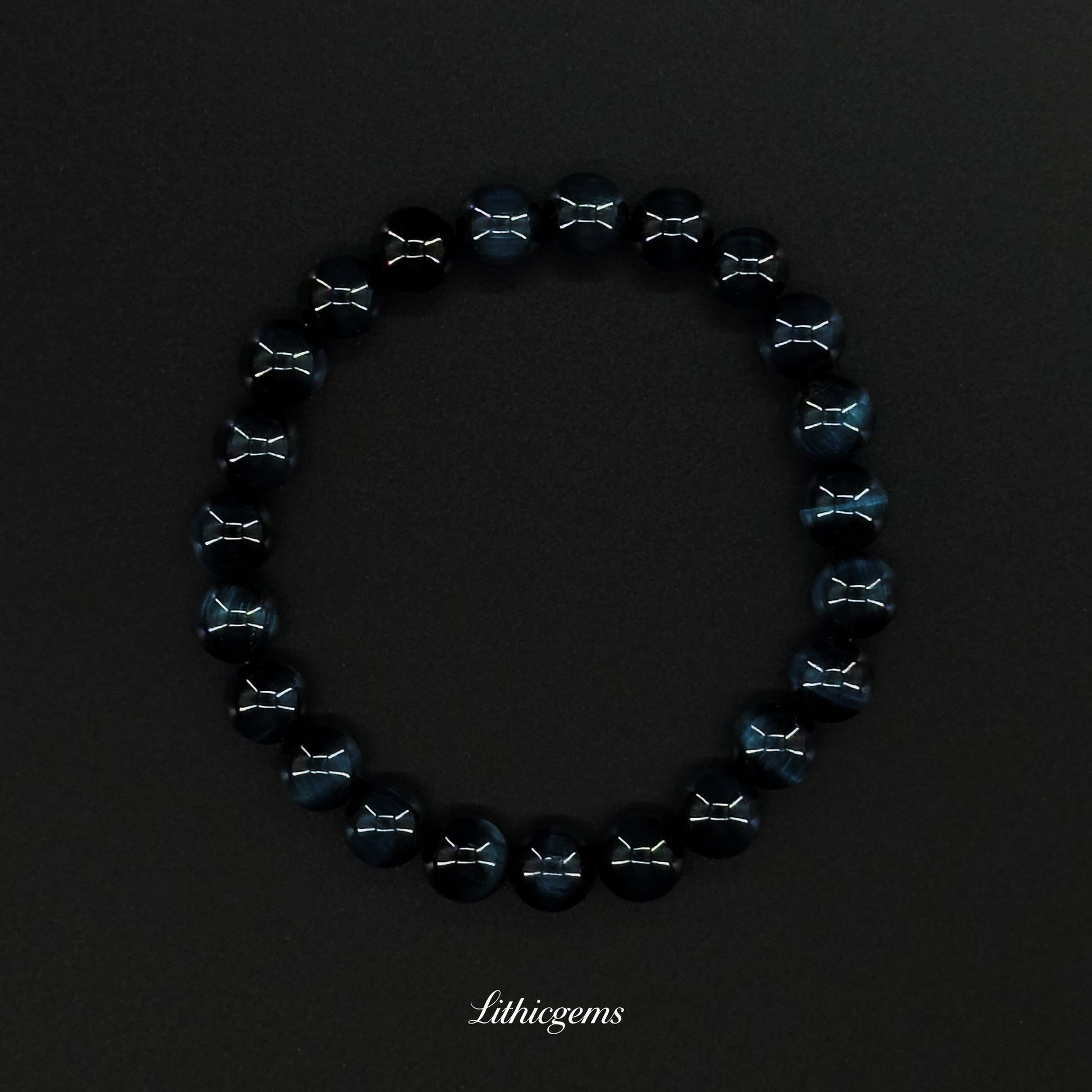 Blue Tiger's Eye Bracelet. Strengthens calm, peace, and intuitive communication. Provides protection during travel and helps speak your inner voice with confidence.