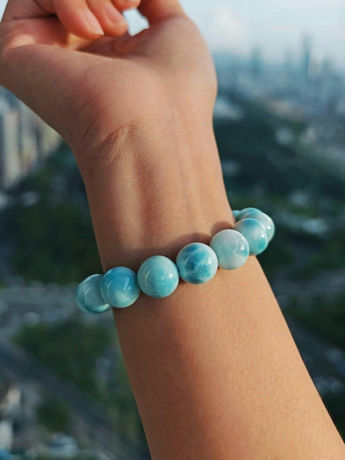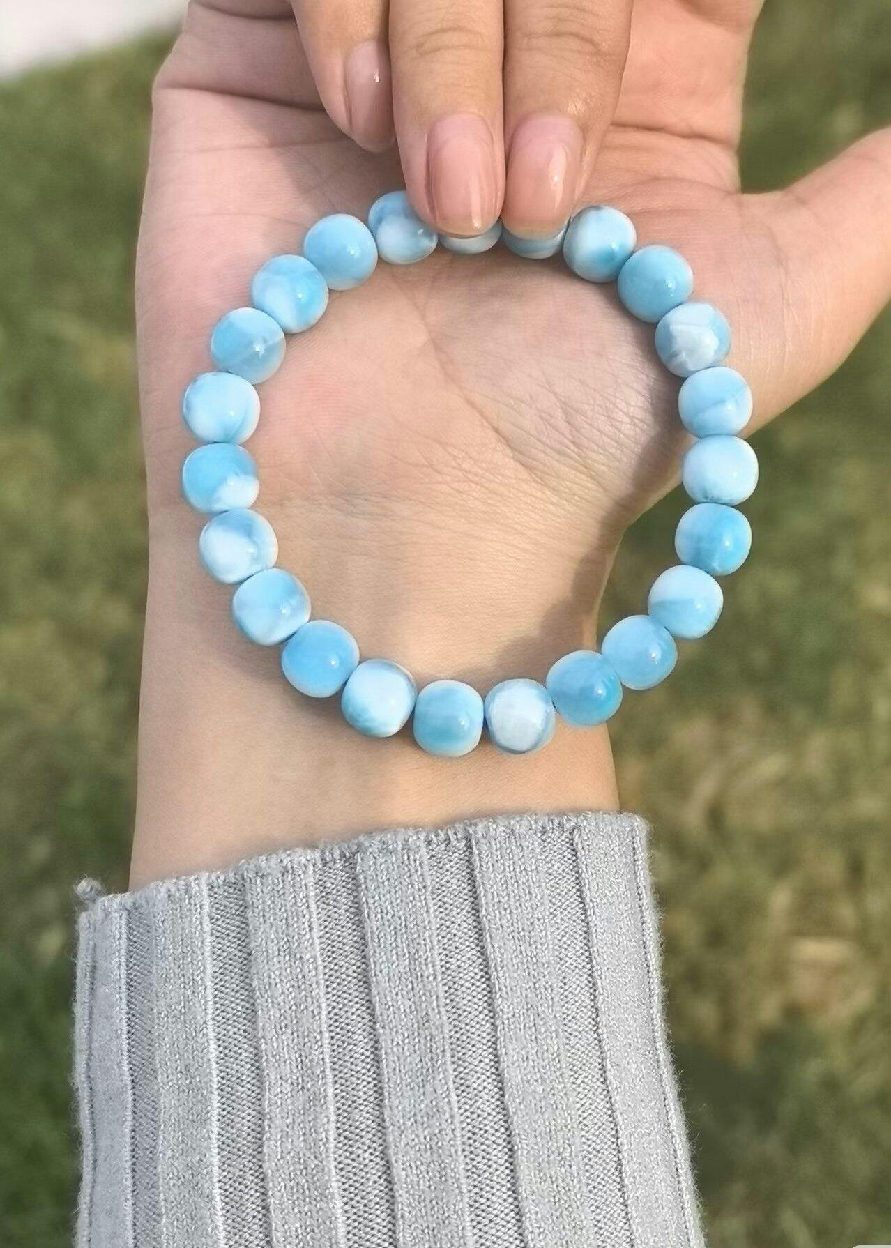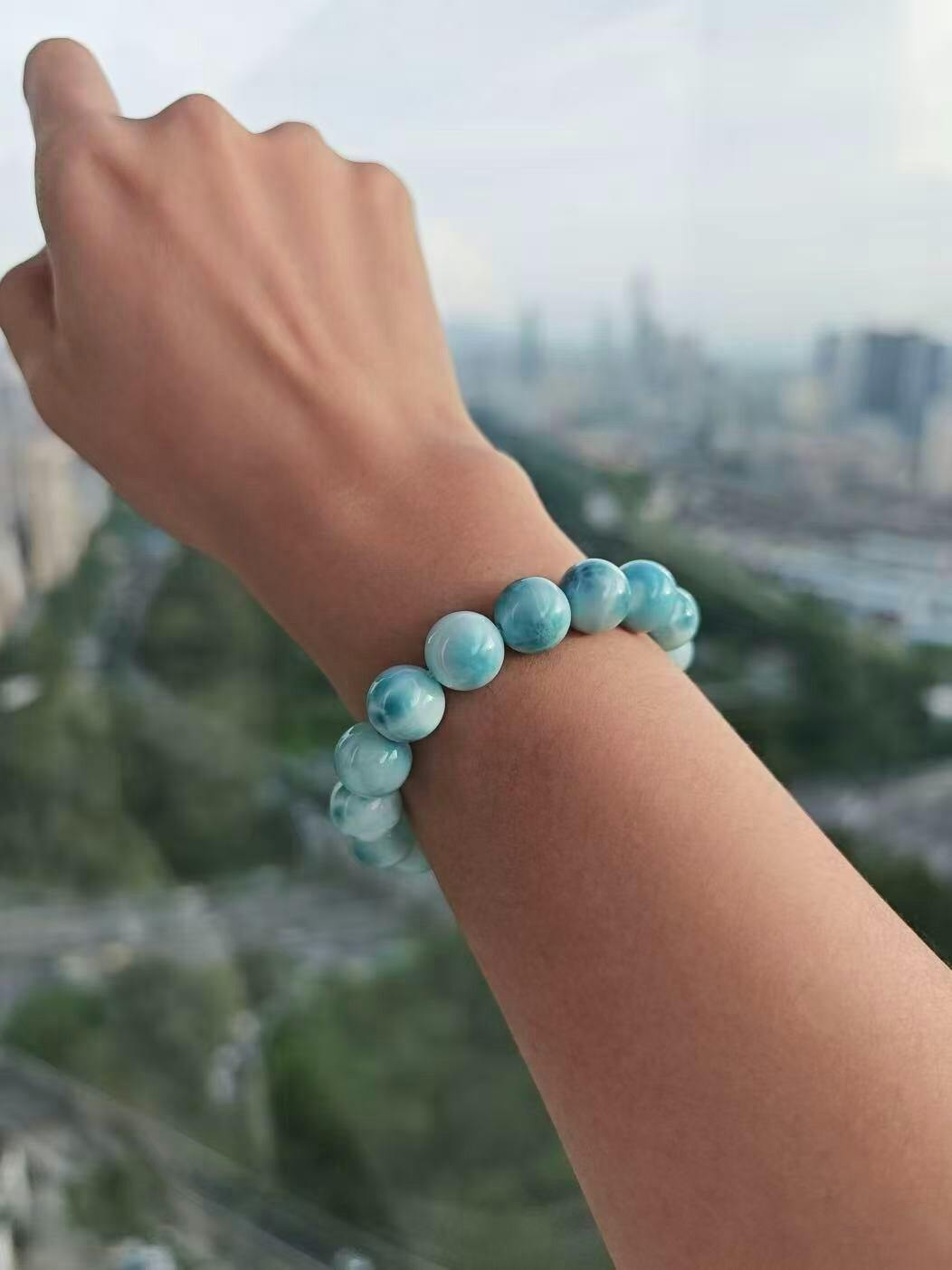 This calming bracelet suits all occasions—from daily wear to special gatherings. It pairs beautifully with casual or formal outfits, accentuating your natural aura. Wearing your custom bracelet regularly helps sync the crystal's vibration with your unique energy. Over time, it becomes part of your personal rhythm and encourages personal growth. Let the serene blues of Larimar remind you to express your truth with compassion.