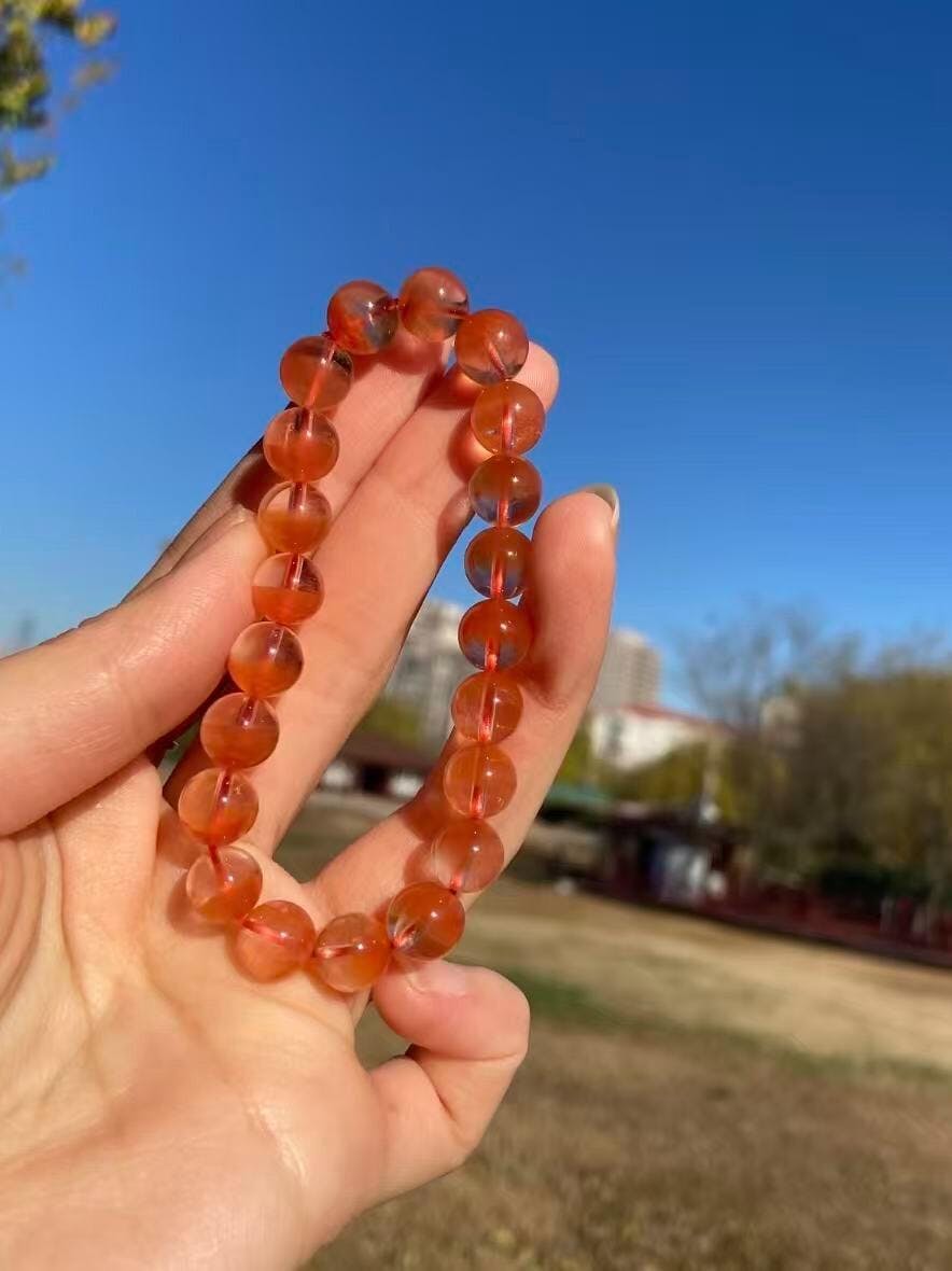 The Red Hare Quartz Bracelet is a unique piece that embodies passion and vitality. Crafted from genuine quartz, this bracelet features delicate red inclusions that resemble silky strands of hair within each bead. These natural filaments flow gracefully, making every bracelet distinctive and mesmerizing.